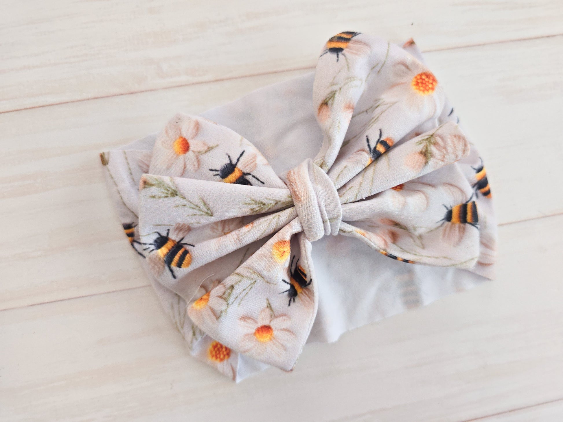 Big Bow Headband- Embroidered Bees