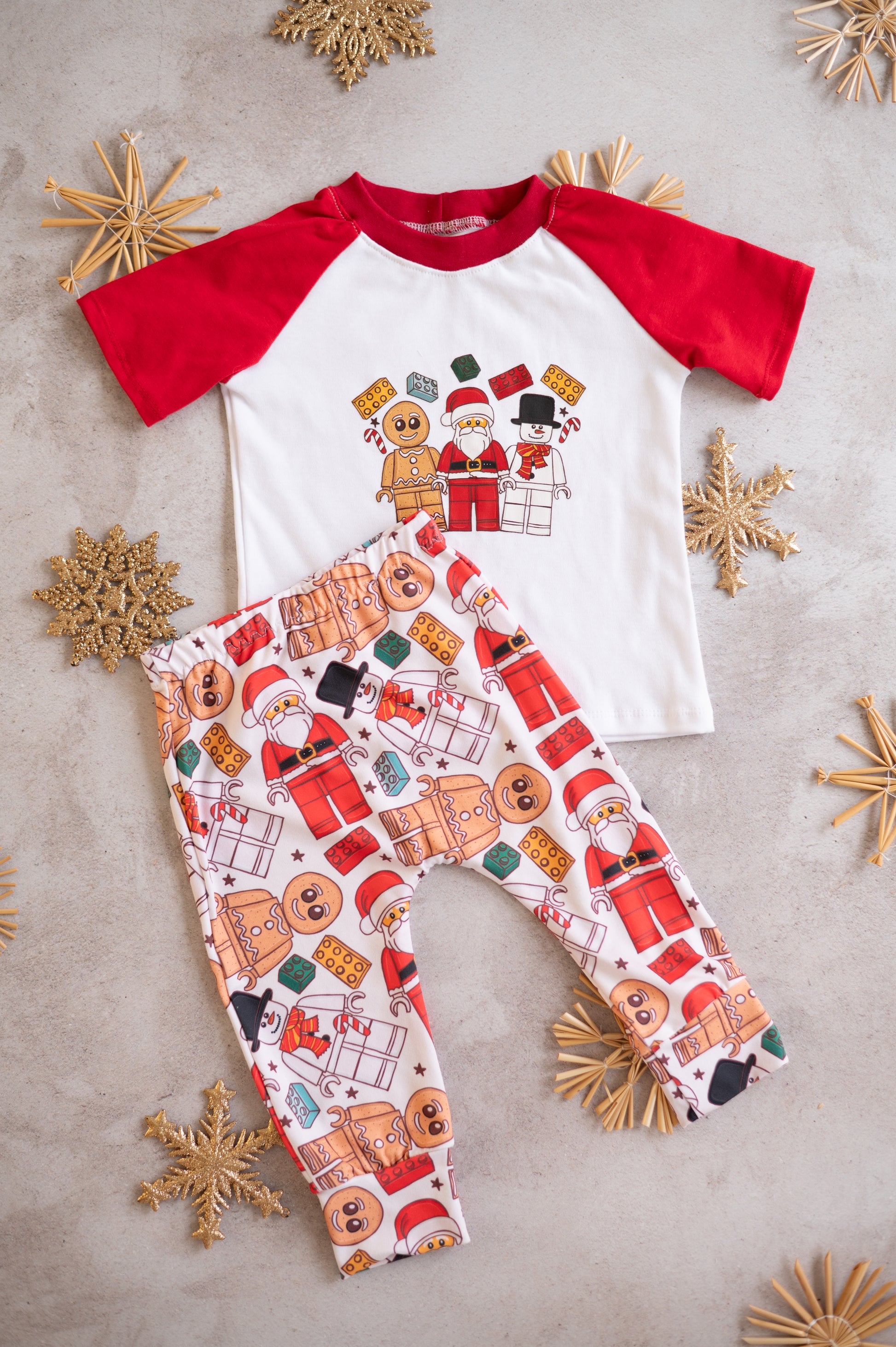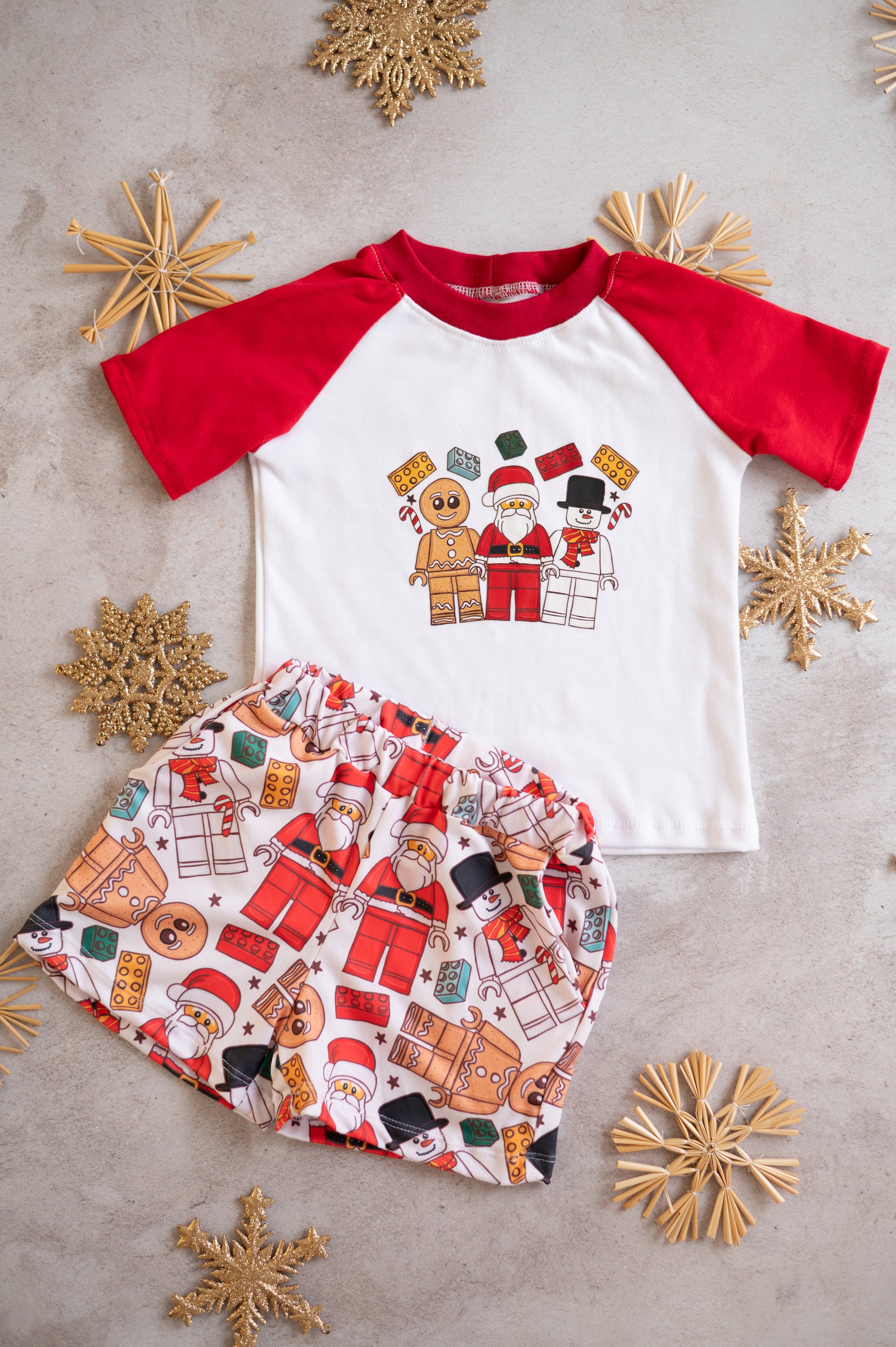Build holiday magic with our Brickmas Jolly Set! 🎄✨ This playful Christmas outfit brings together everyone’s festive favorites — Santa, a gingerbread man, and a cheerful snowman — all in a quirky Lego-inspired print.