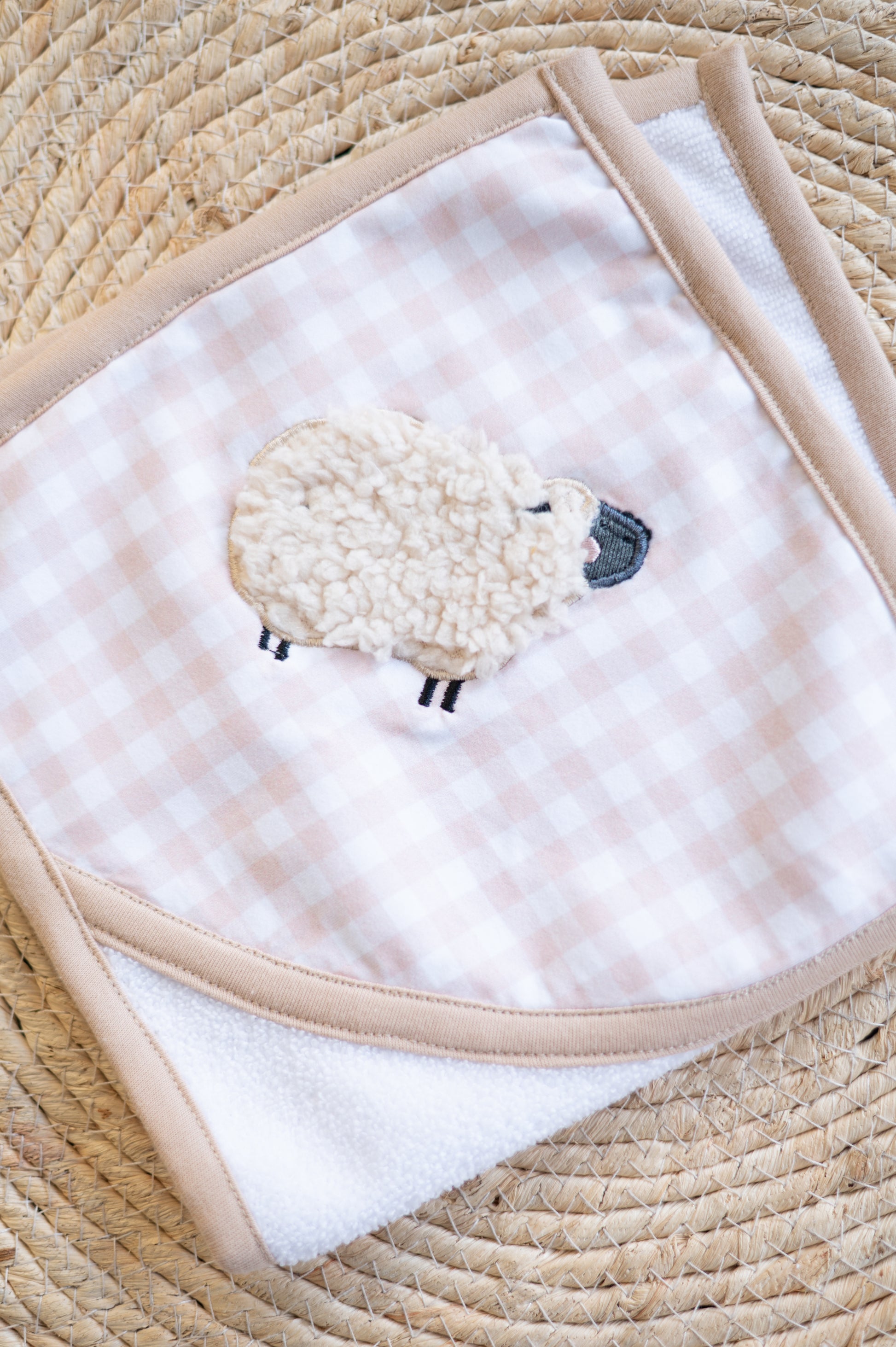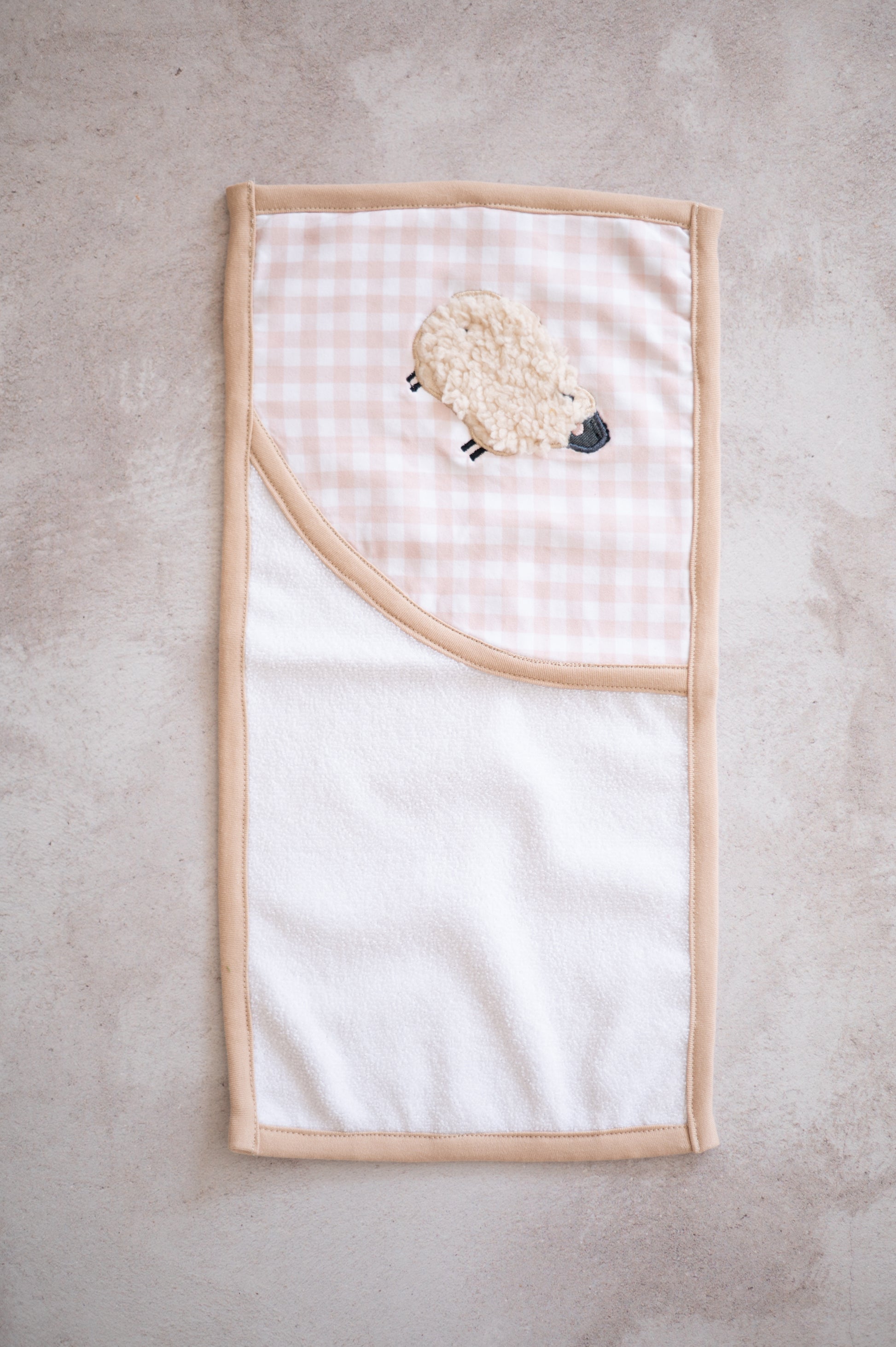 Add a sweet and meaningful touch to baby’s essentials with our Sheep Appliqué Burp Cloth, beautifully crafted for comfort and charm. Featuring a soft beige gingham print and a fluffy textured sheep design, it’s absorbent, gentle on baby’s skin, and makes those everyday moments extra special