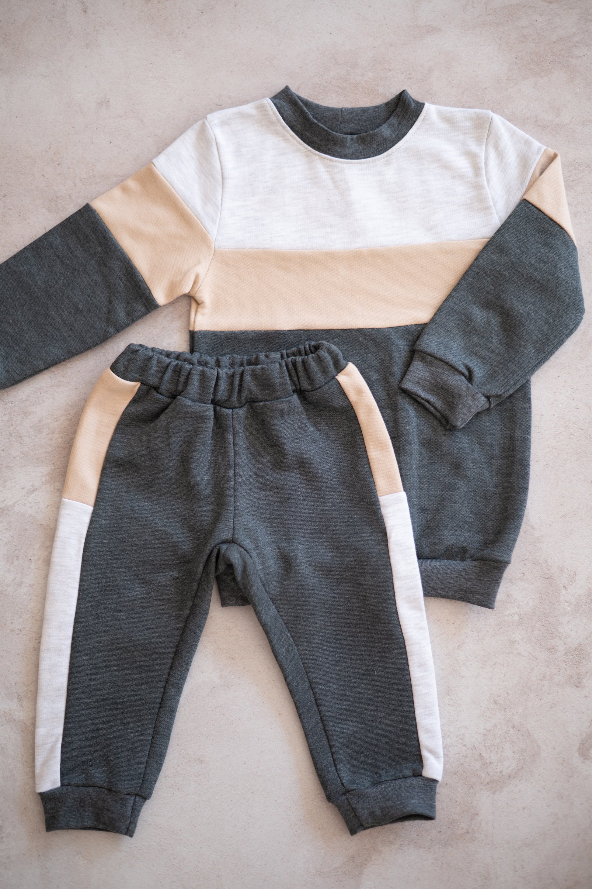 Color block Tracksuit set- Charcoal, Stone & Grey Melange