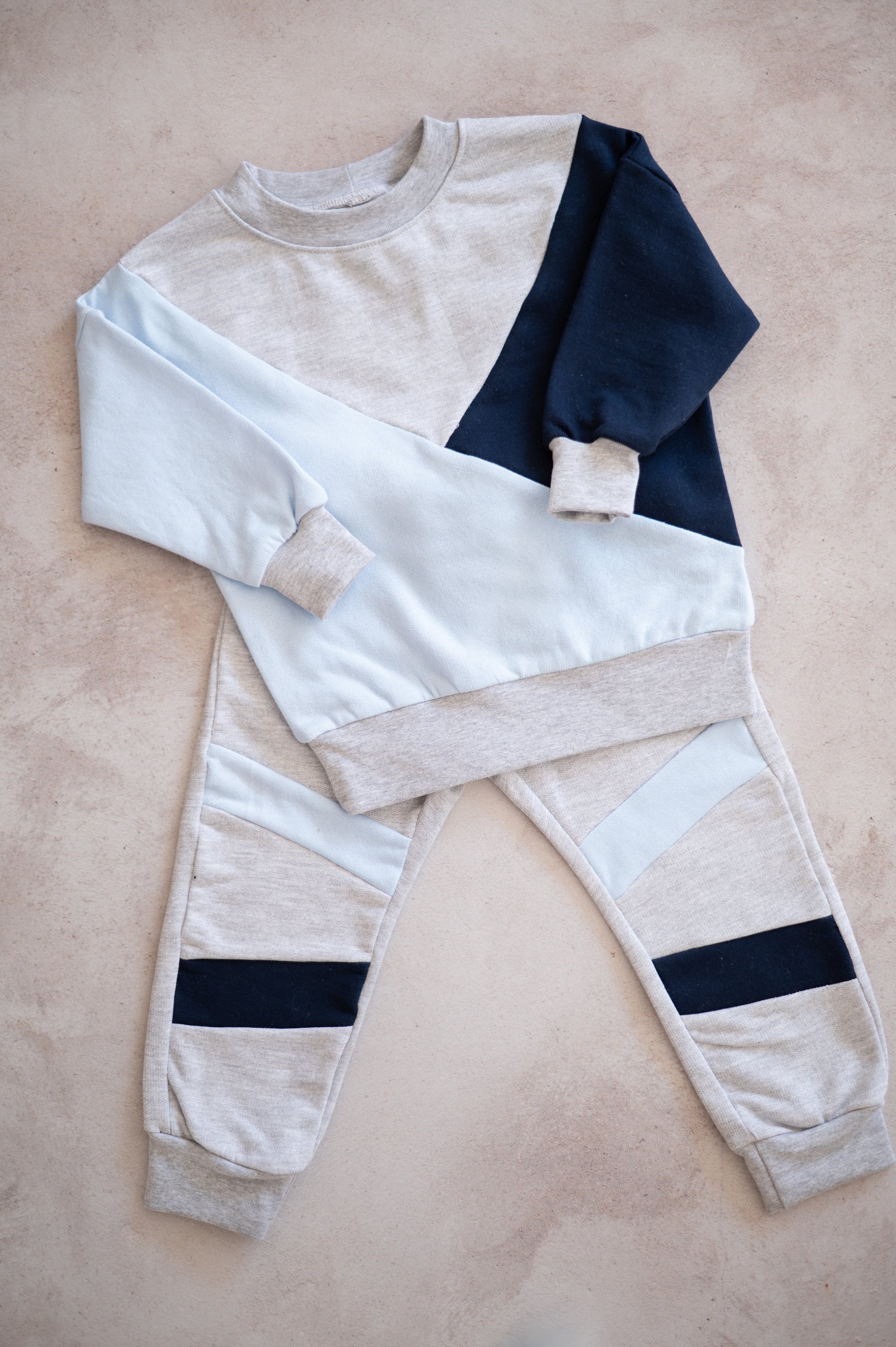 Color Block Tracksuit set- Navy, Light blue and Grey