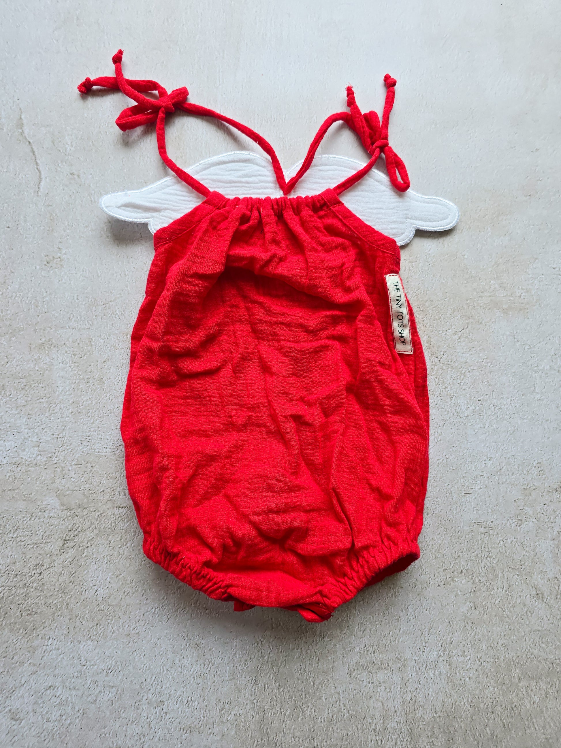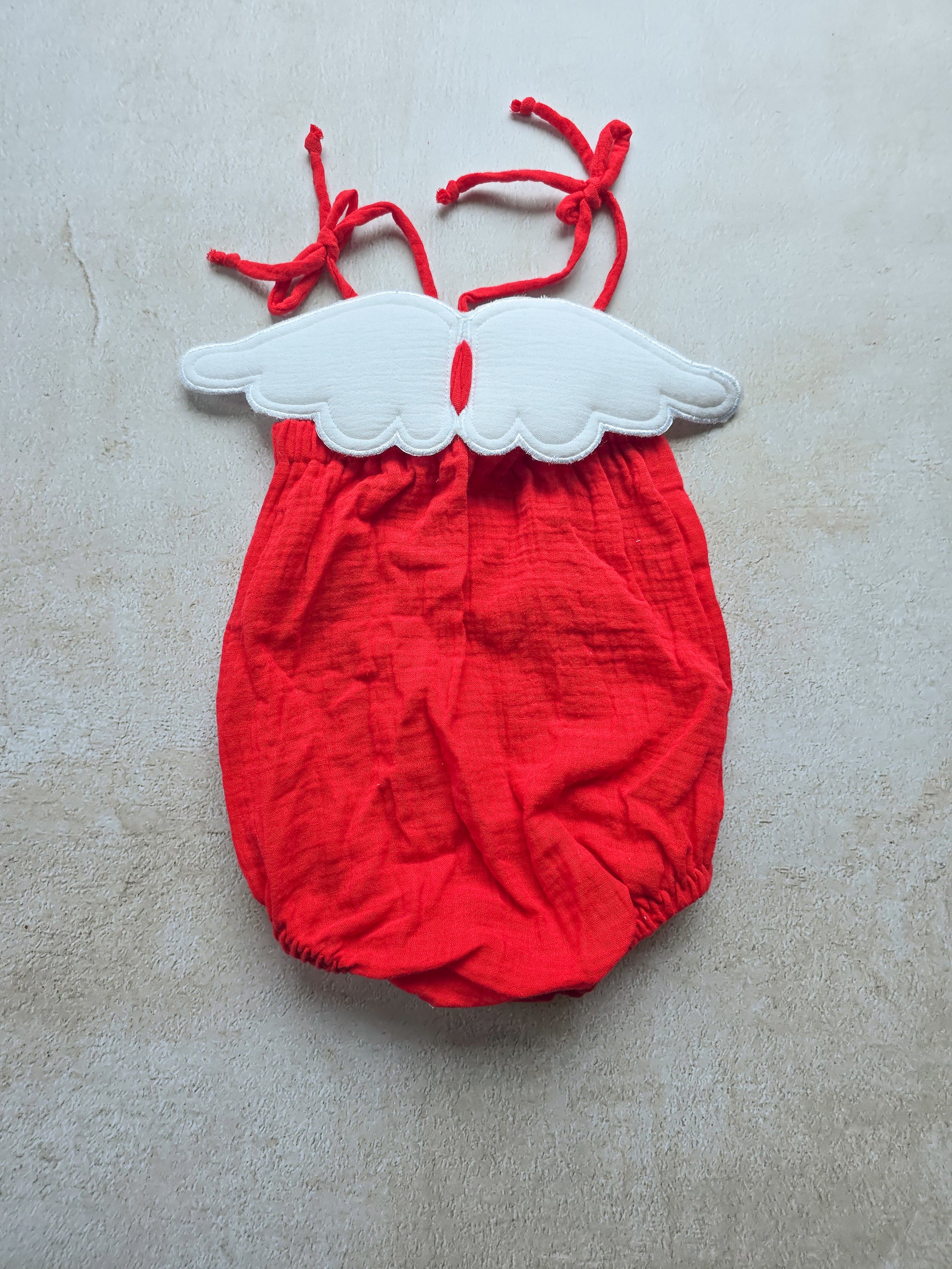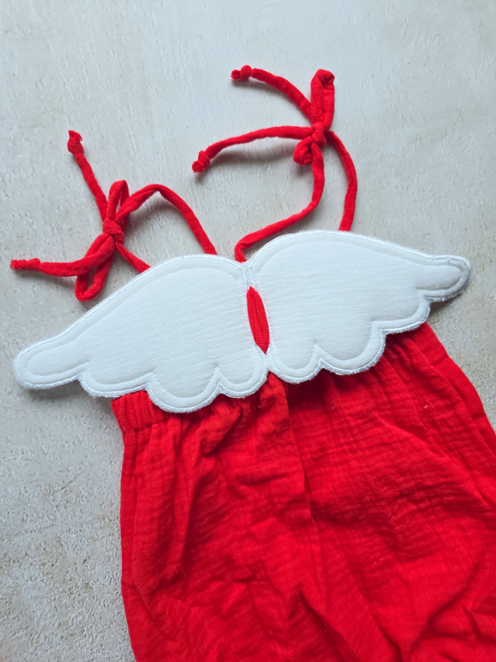 Get your little one ready for Valentine's day with our Cupid Romper! This adorable romper features detachable wings. The rommper is made from soft, red muslin fabric. Perfect for spreading love and joy, this romper is sure to make your little Cupid stand out!
