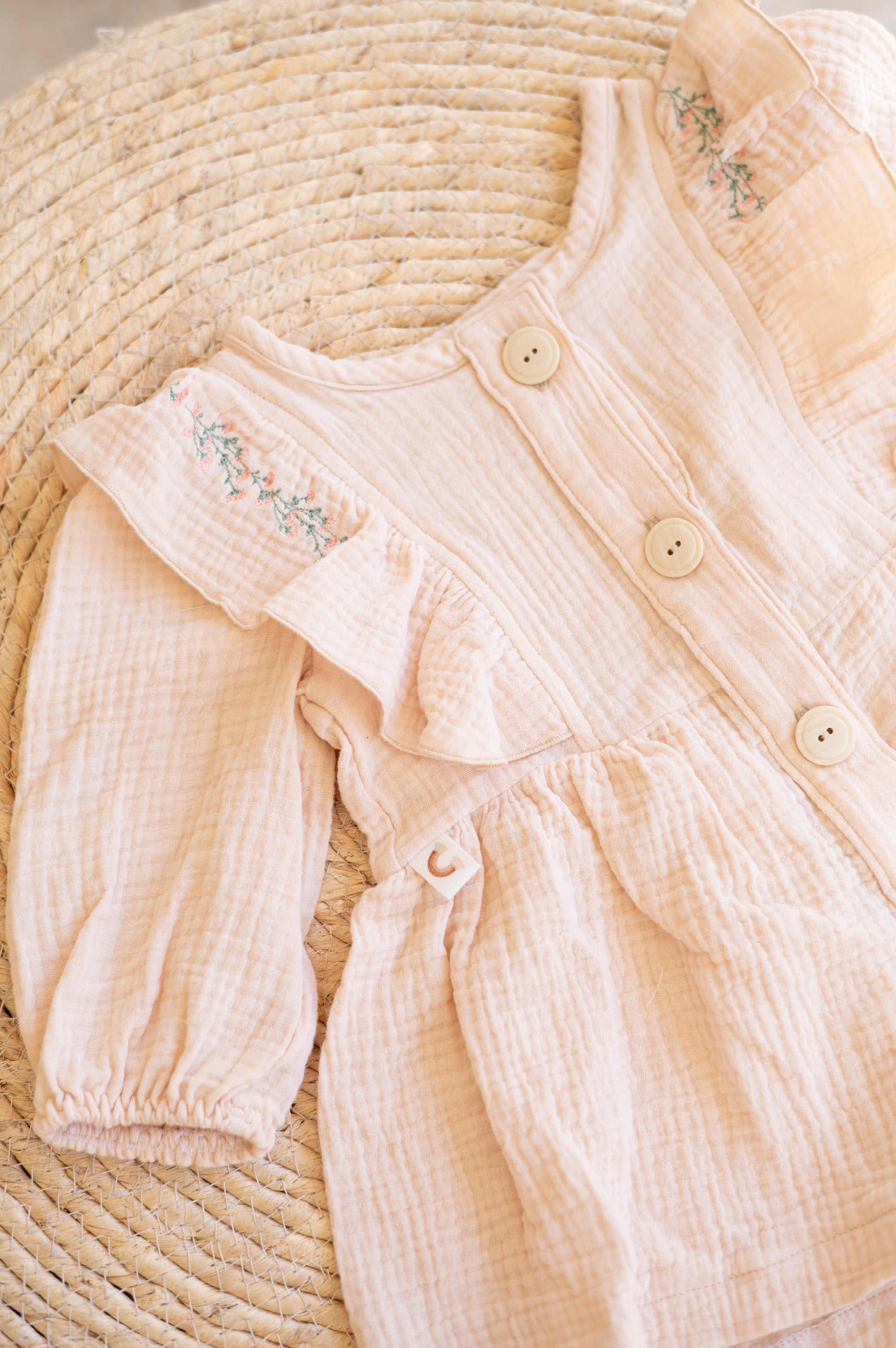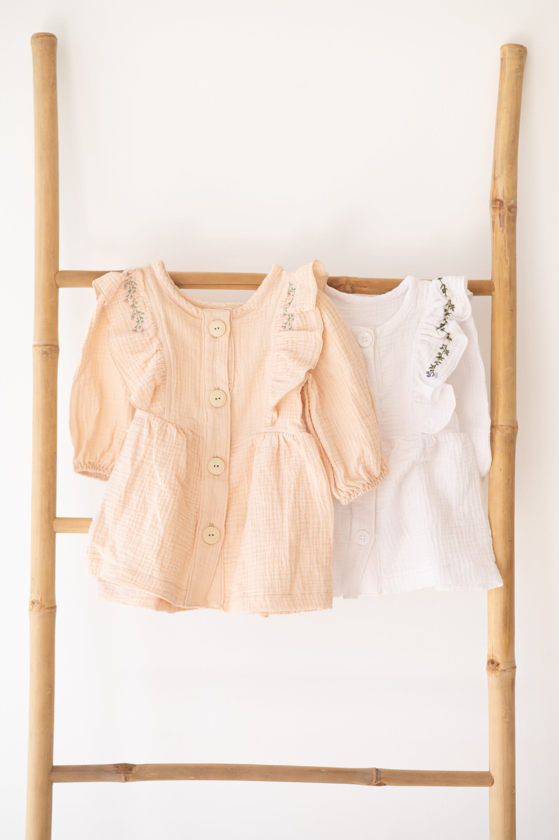 Our Emily Dress has the most gorgeous floral embroidered detail.