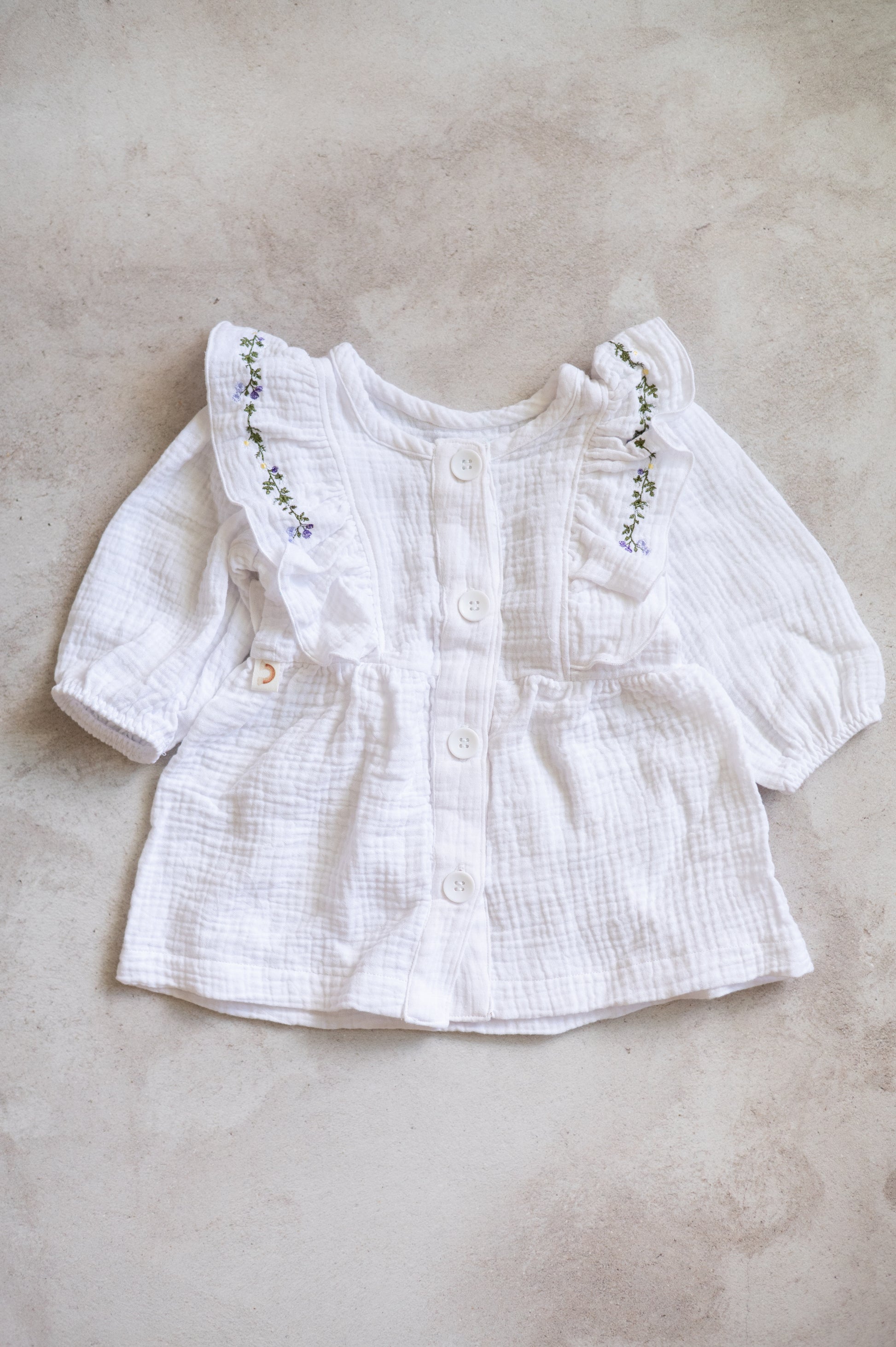 Emily Dress- White with floral Embroidery
