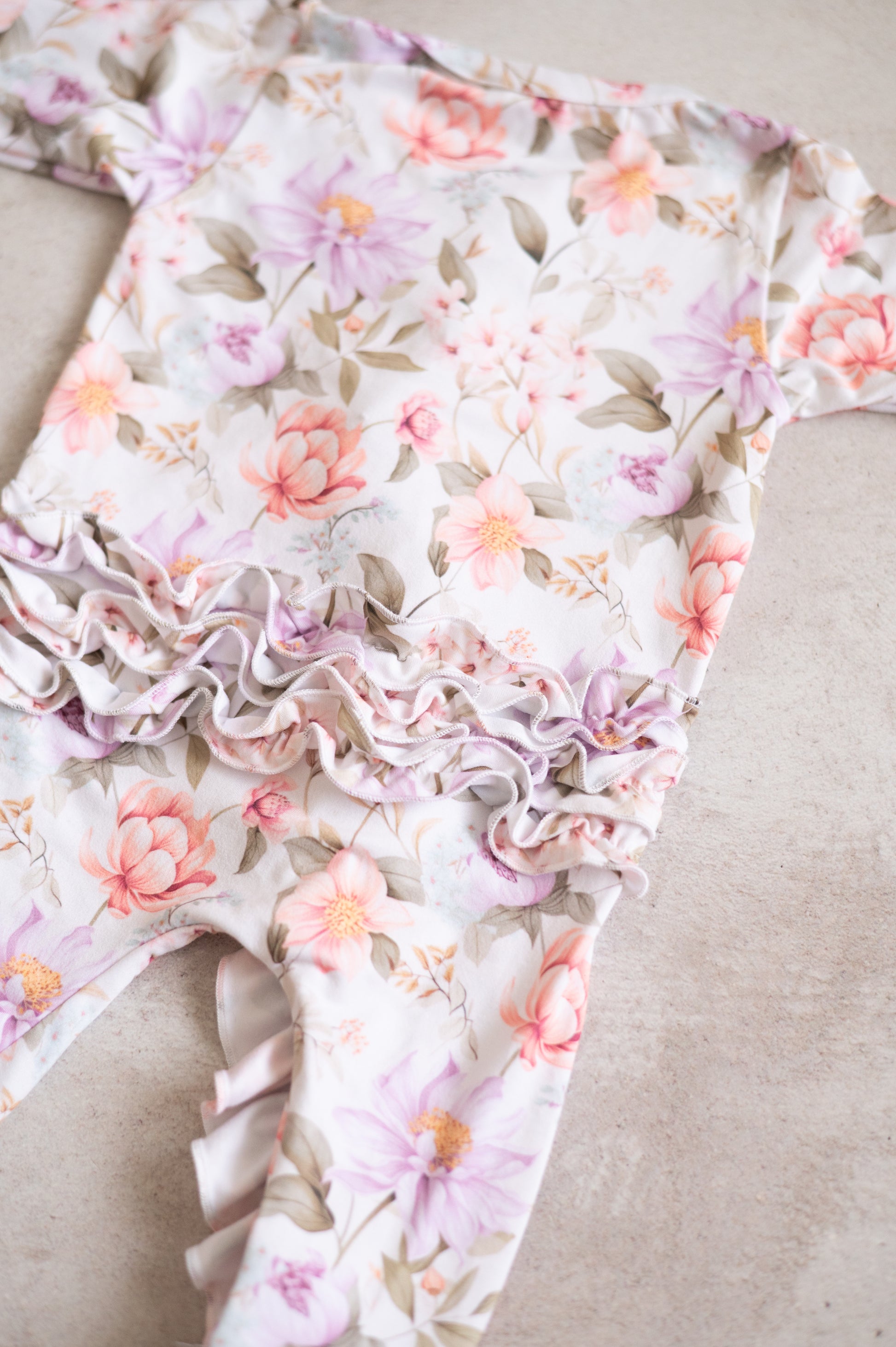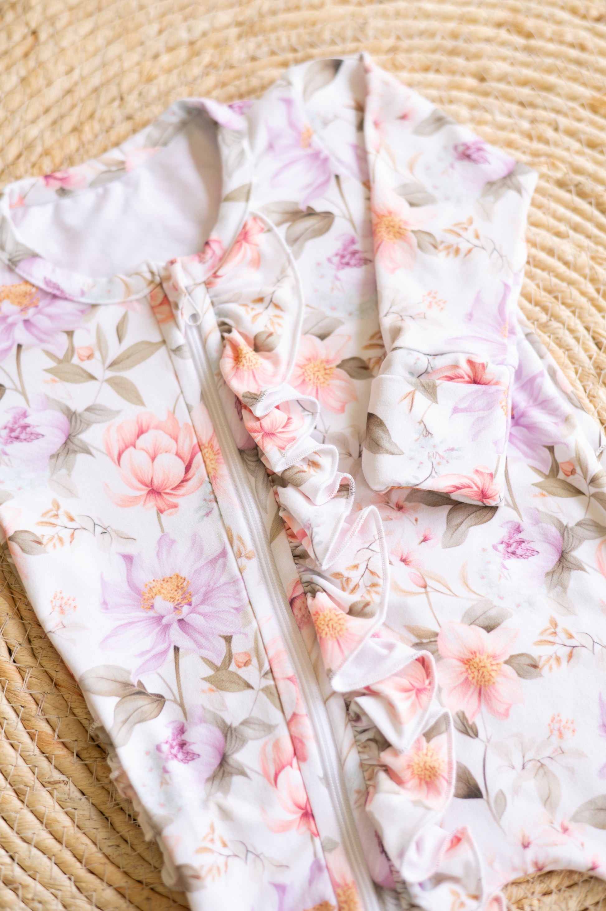 Frilly Zip suit with frilly bums- Plush Petals