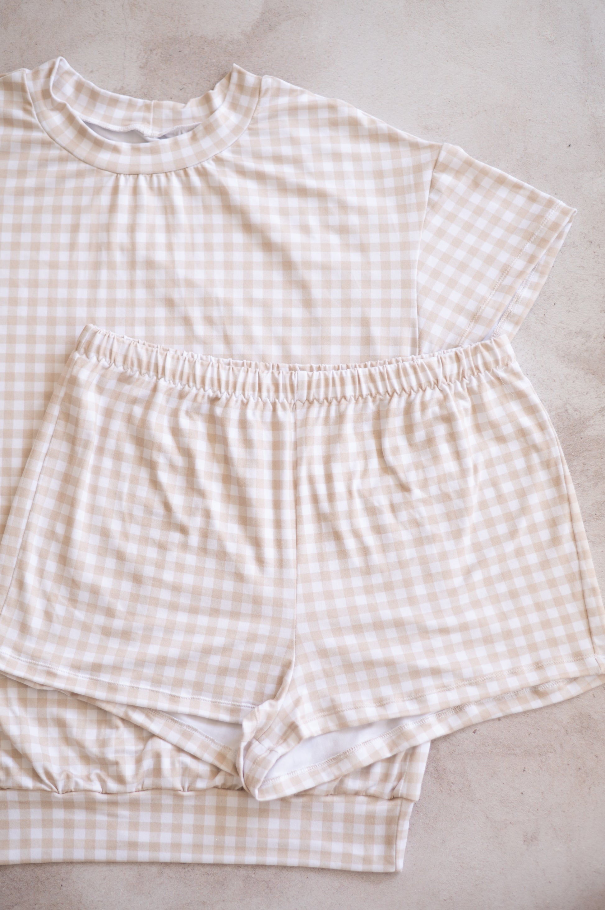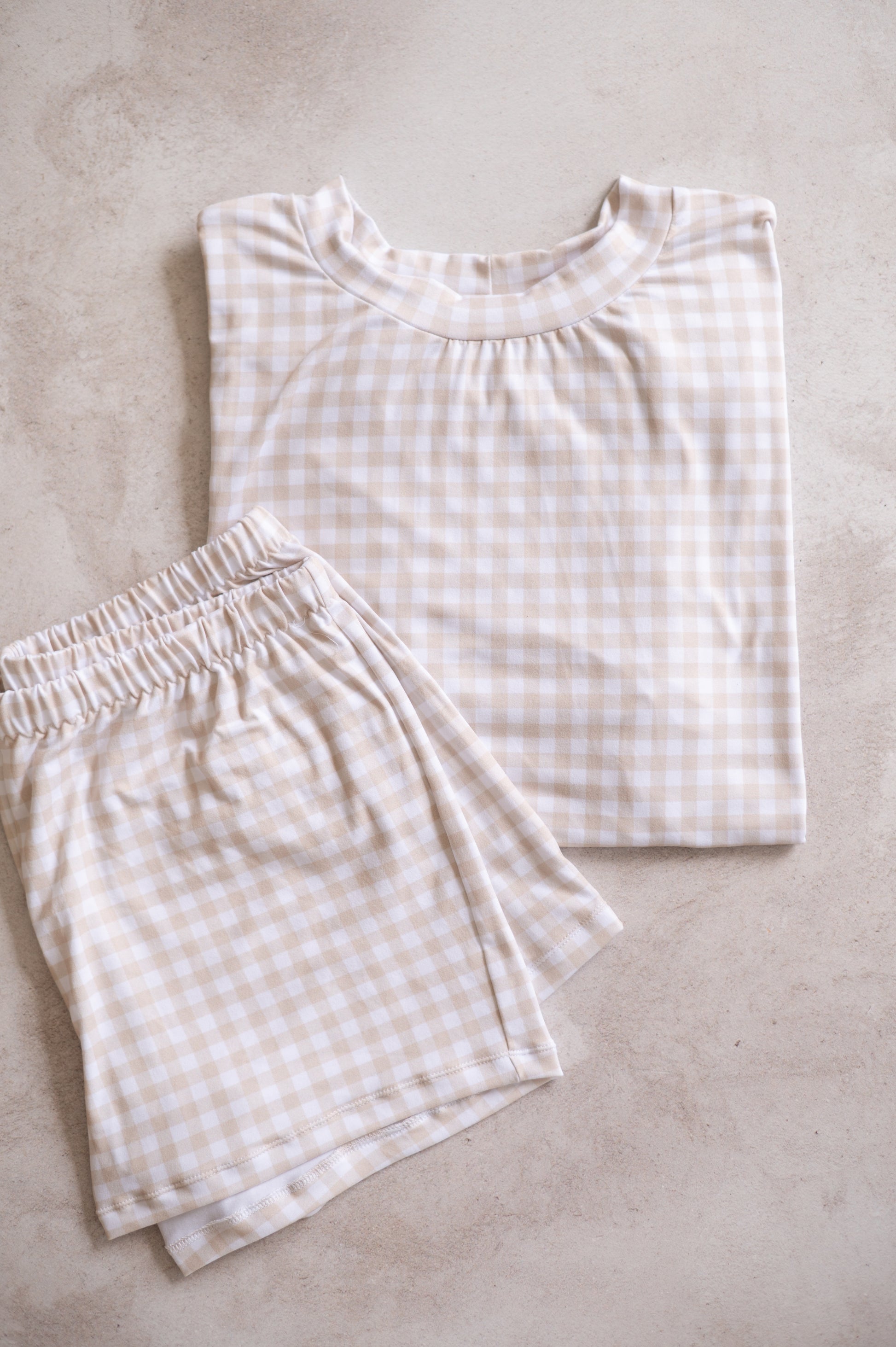 Mom and Me Matching PJs ( Adult)- Beige Gingham