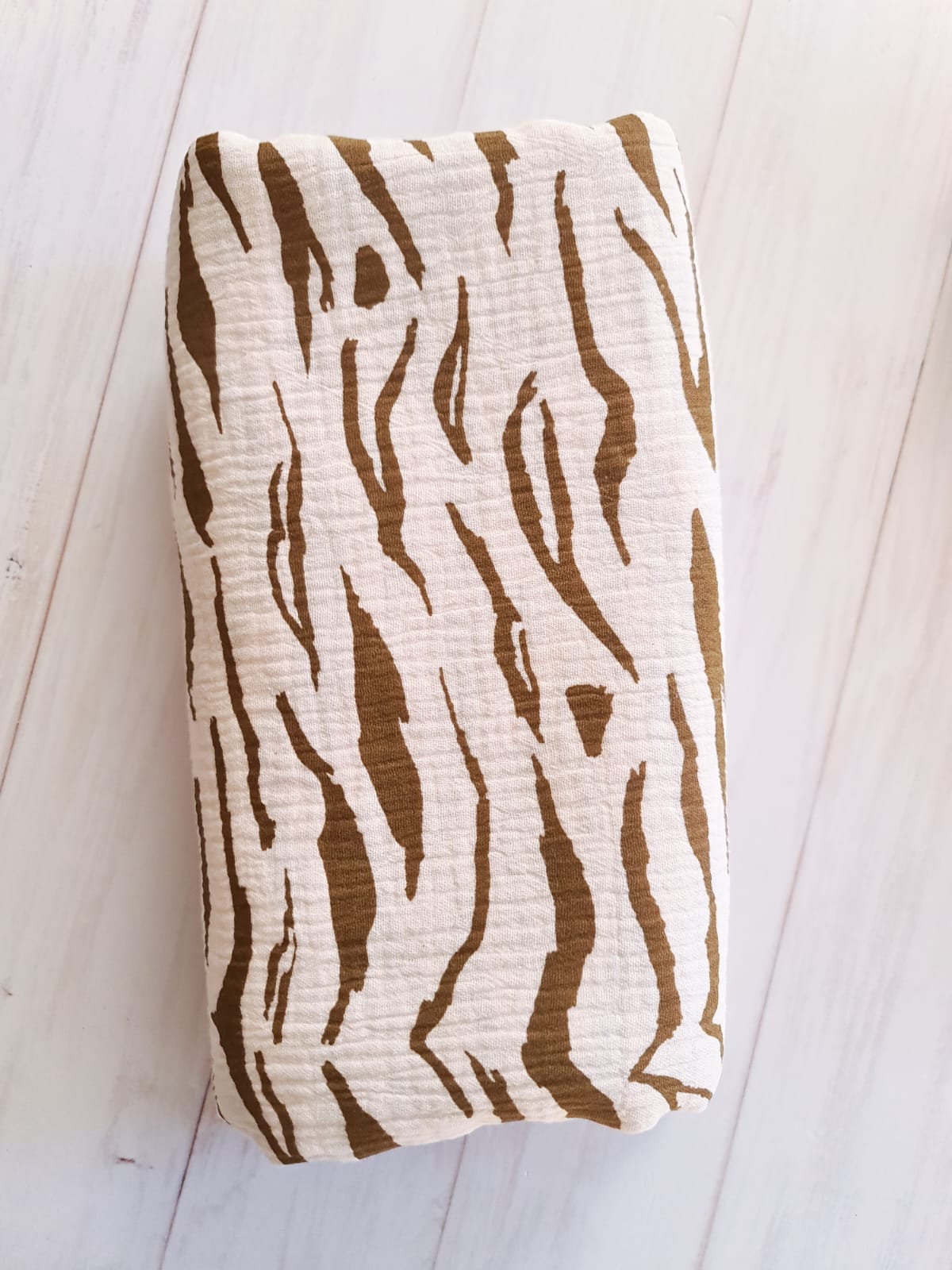 Muslin Swaddle Blanket- Beige Tiger Stripes