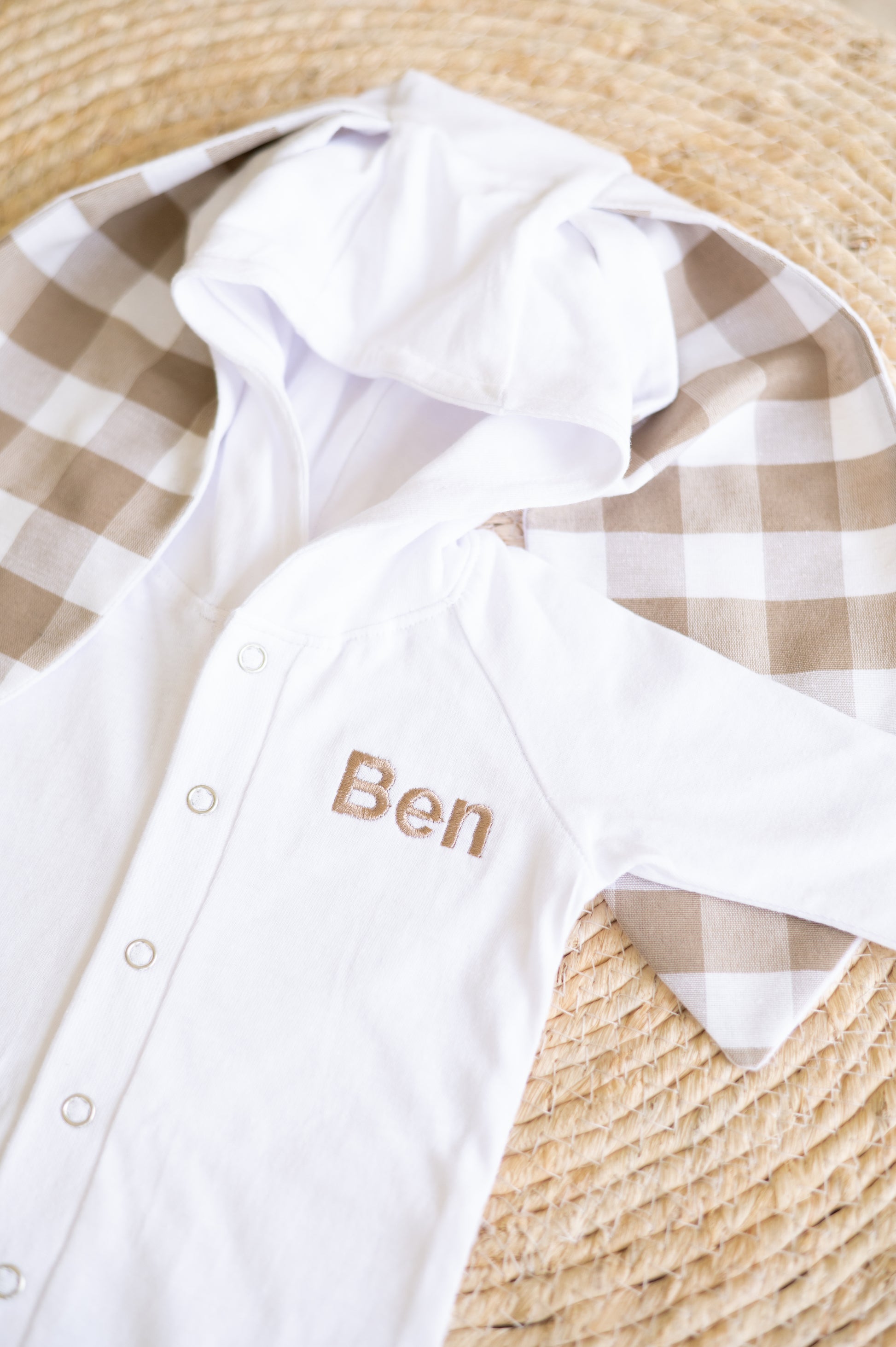 Clothing items with press stud buttons need to be handled with care. PLEASE do not pull on the fabric as the press studs can rip and tear the material. Gently place your fingers onto the press stud and tug gently.
