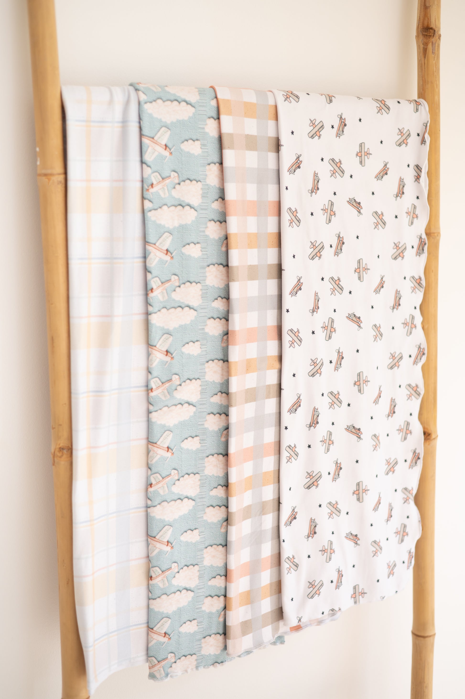 These gorgeous blankets are made from a stretchy soft knit fabric. The stretch in the fabric allows baby to move comfortably without feeling insecure and unwrapping themselves. The swaddle blanket can also double up as a lightweight summer blanket.