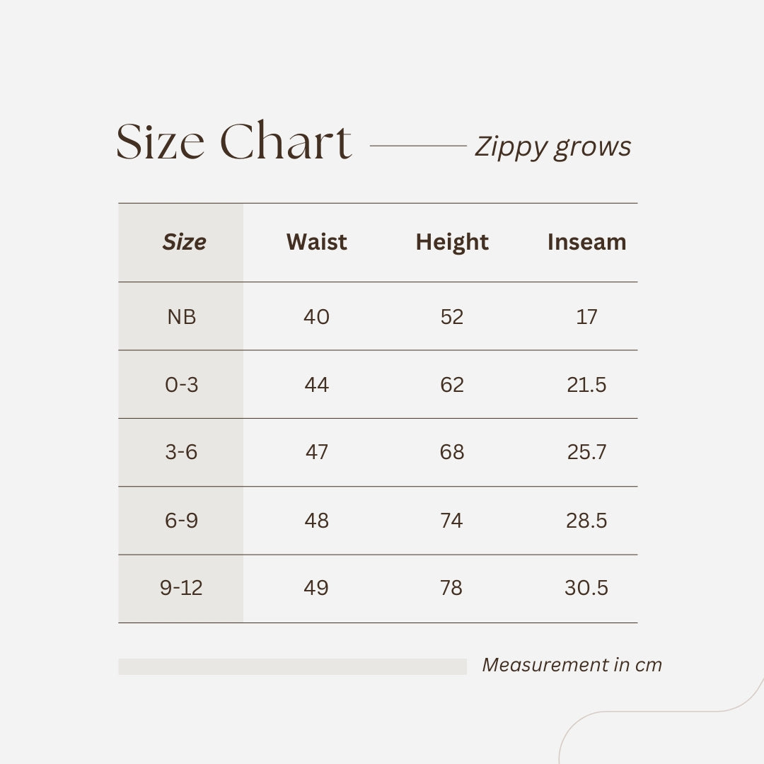 Elevate your child's wardrobe with our one of a kind zippy grow collection —where comfort meets adorable style!